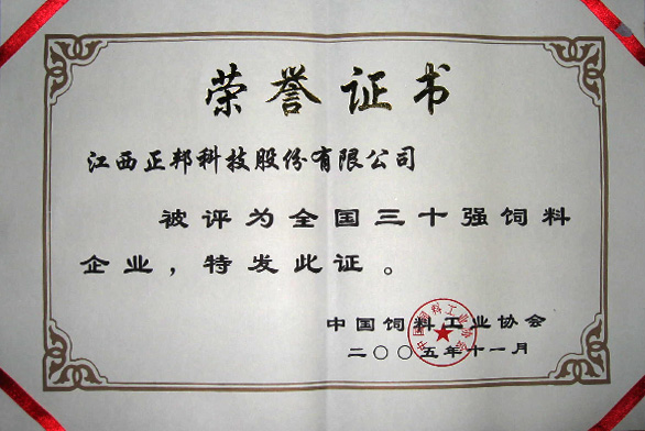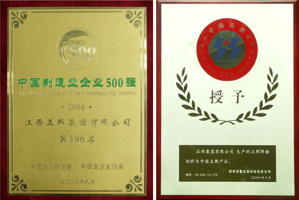中國制造企業(yè)500強(qiáng)第396名; 正邦豬飼料成為中國名牌產(chǎn)品; 江西省原種豬場有限公司成立,正邦種豬育種步入專業(yè)化運(yùn)營階段。