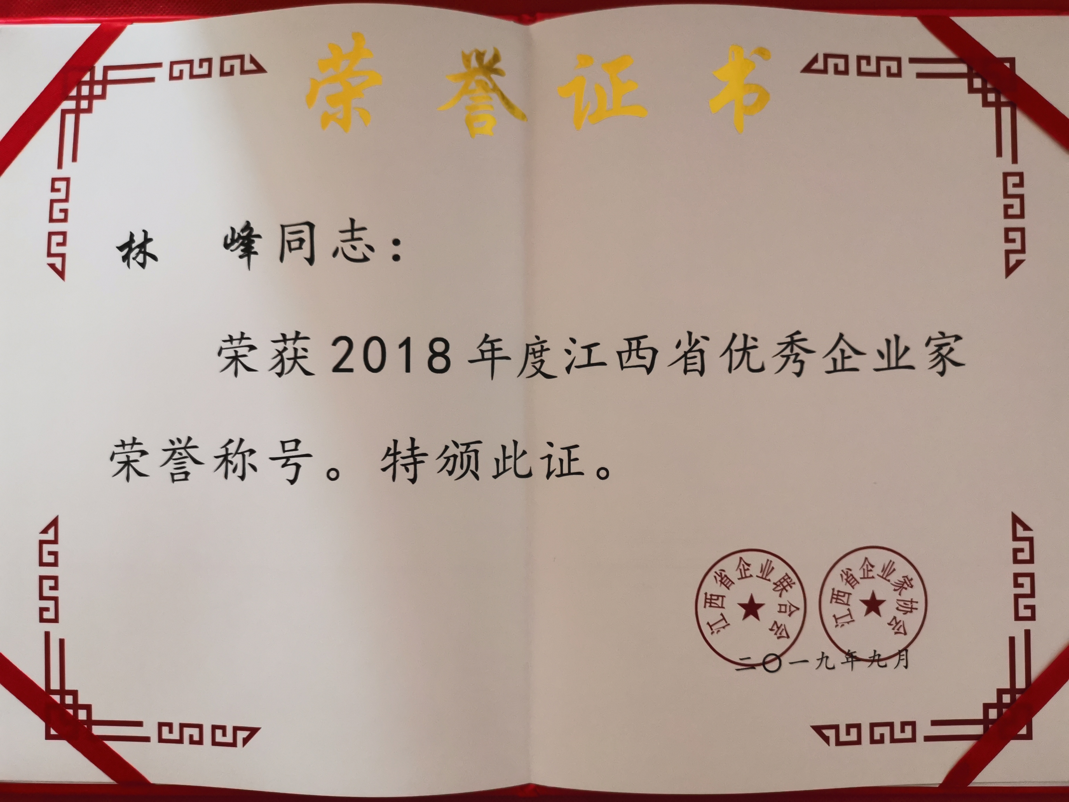 林峰2018年度江西省優(yōu)秀企業(yè)家